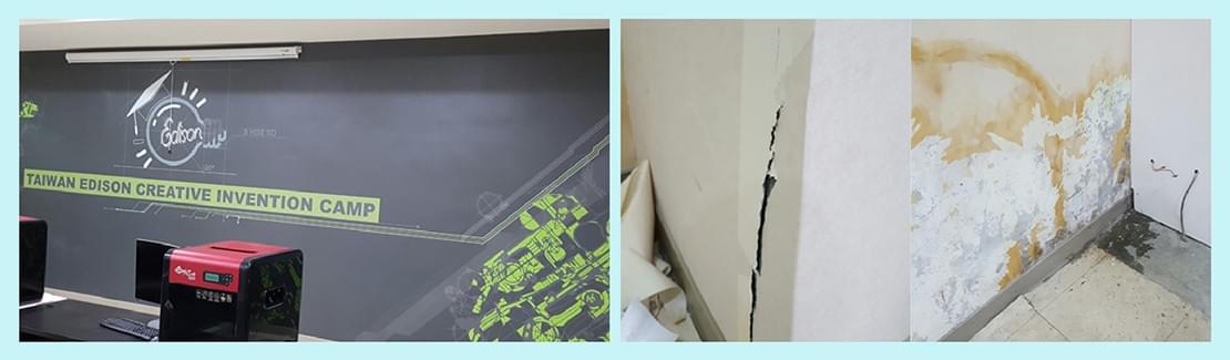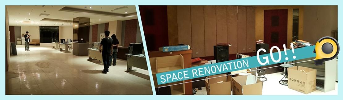 從婚宴會館,到創意發明基地,為了保留資金購買儀器教具,裝潢費用殺到濺血,並且延用婚宴會館的部份歷史軌跡,發揮創客精神,能自行設計的、能動手的,自己來。感謝樂見、水電蕭工、防水李先生、消防白先生…專業協助,讓基地慢慢成形。